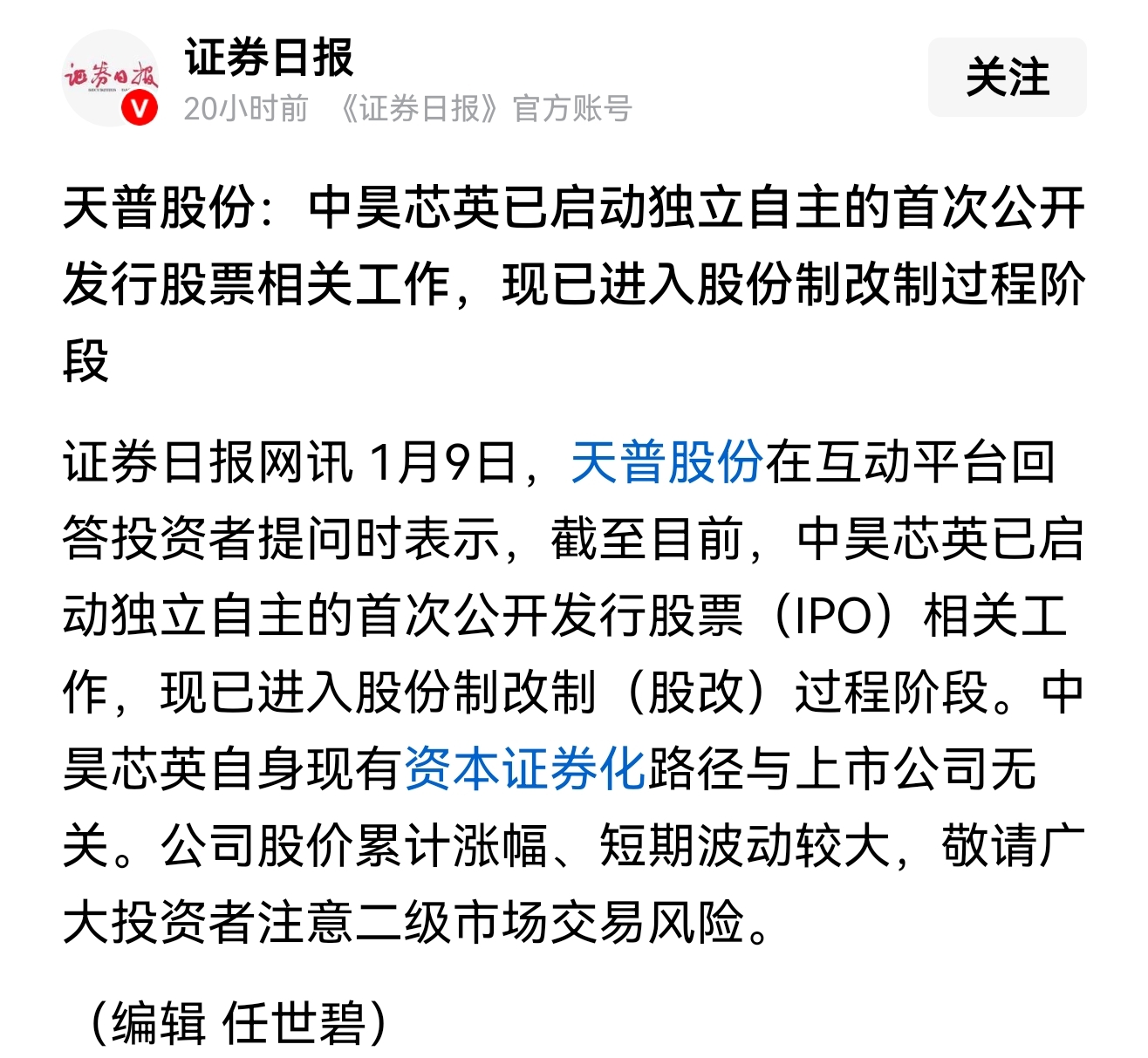 郑重声明:用户在财富号/股吧/博客等社区发表的所有信息(包括但不限于文字、视频、音频、数据及图表)仅代表个人观点,与本网站立场无关,不对您构成任何投资建议,据此操作风险自担。请勿相信代客理财、免费荐股和炒股培训等宣传内容,远离非法证券活动。请勿添加发言用户的手机号码、公众号、微博、微信及QQ等信息,谨防上当受骗!