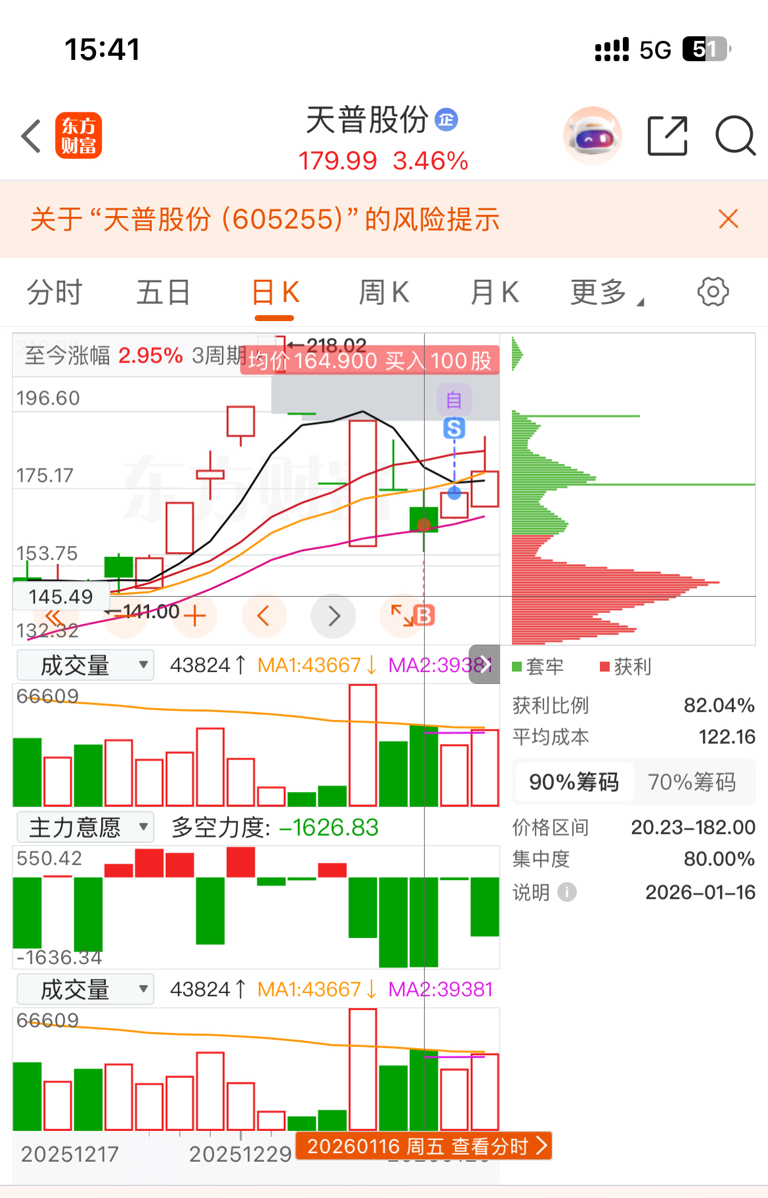 $天普股份(SH605255)$ 少少一百股,昨天卖飞,不然今天卖多得一千多块钱