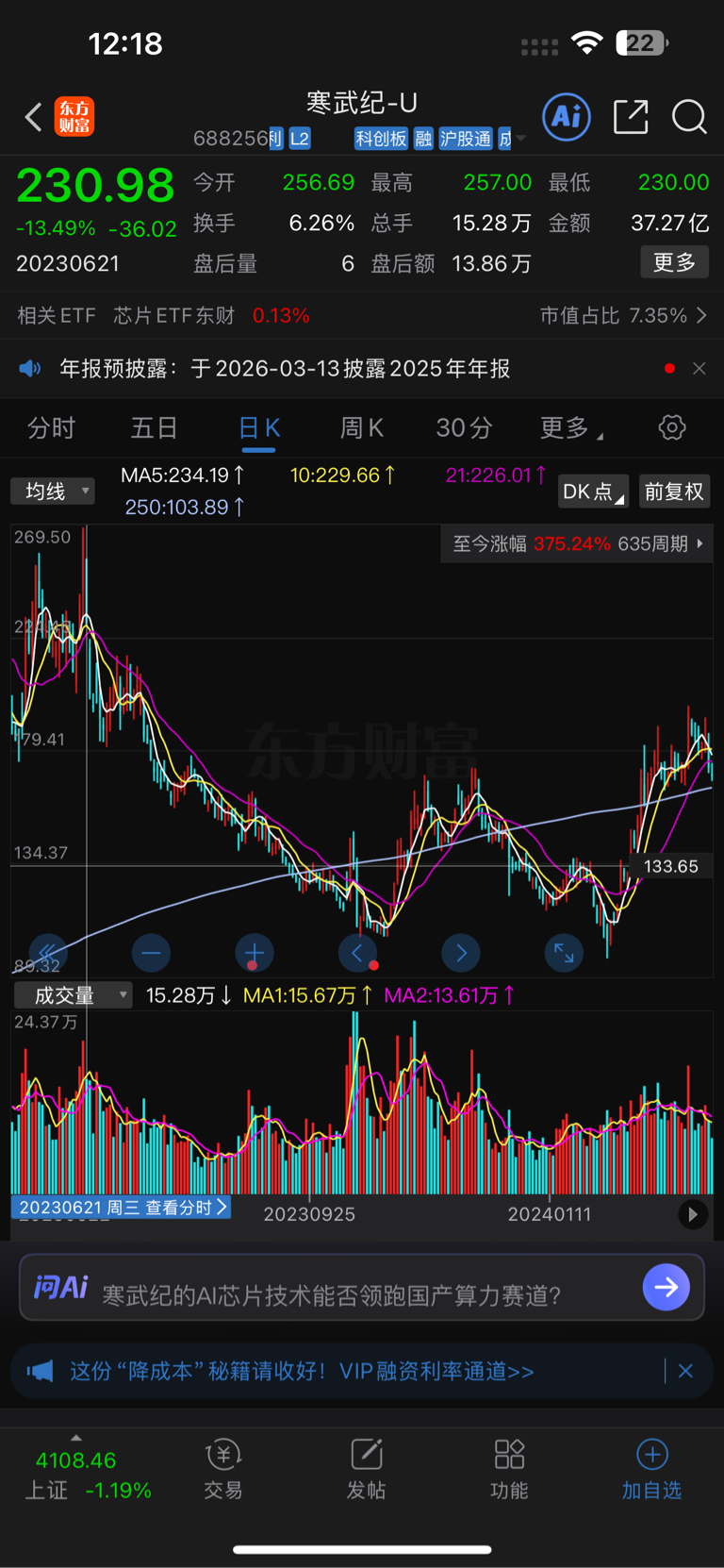 时间换空间,只是寒武纪是阴跌,中昊天普是急跌
