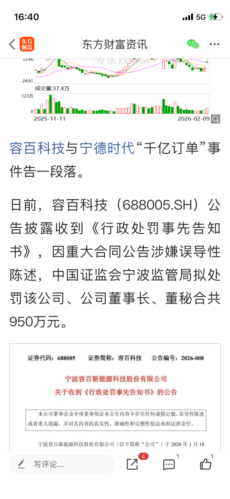 荣百科技结束罚款950万