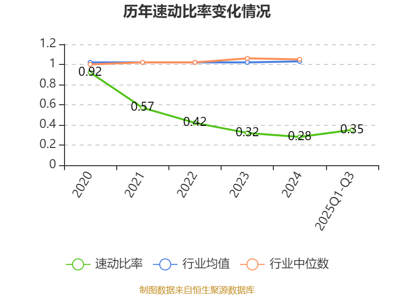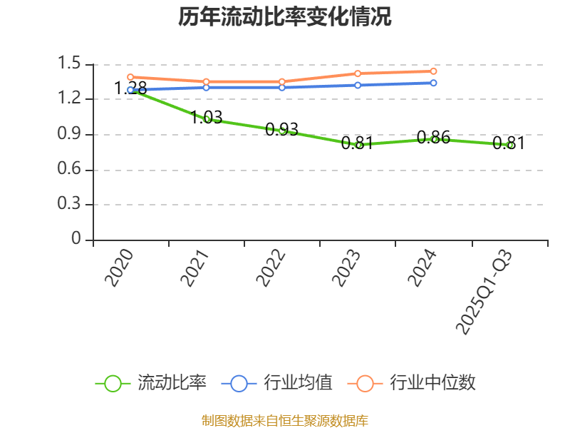 2025年前三季度,公司流动比率为0.81,速动比率为0.35。