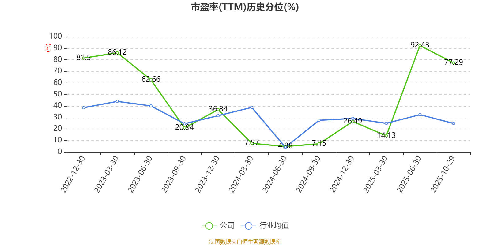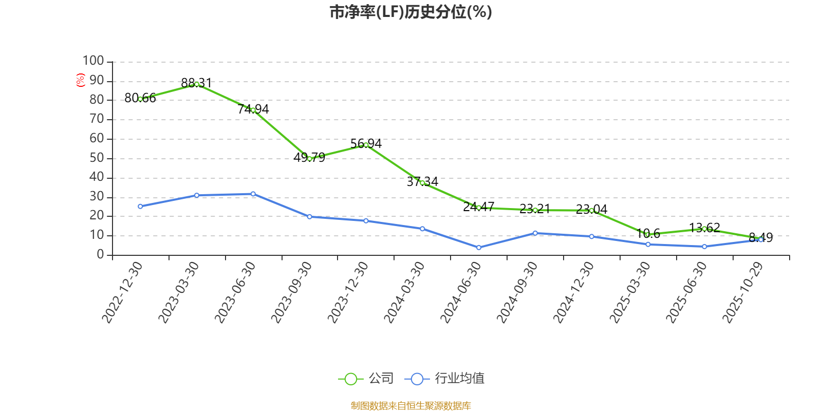 市盈率、市净率为负时,不显示当期分位数,会导致折线图中断。