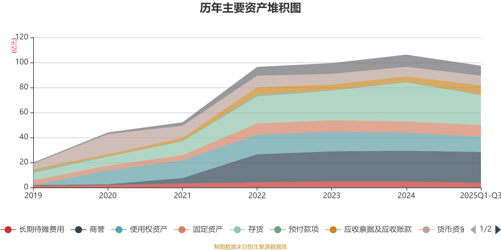 资产重大变化方面,截至2025年三季度末,公司存货较上年末减少23.24%,占公司总资产比重下降4.79个百分点;应收票据及应收账款较上年末增加69.82%,占公司总资产比重上升3.42个百分点;商誉较上年末增加0.01%,占公司总资产比重上升2.1个百分点;使用权资产较上年末减少15.74%,占公司总资产比重下降1.1个百分点。
