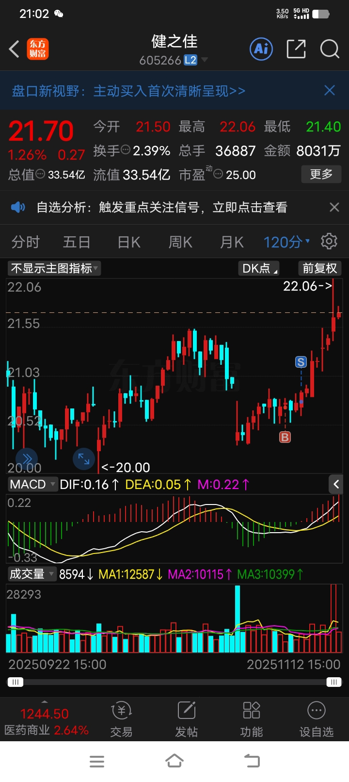 $健之佳(SH605266)$ 这票我知道是买在鸭抬头起涨点的,就是我看了下商誉占了百分之九十多,才清仓不玩的,也挣了顿饭钱了……