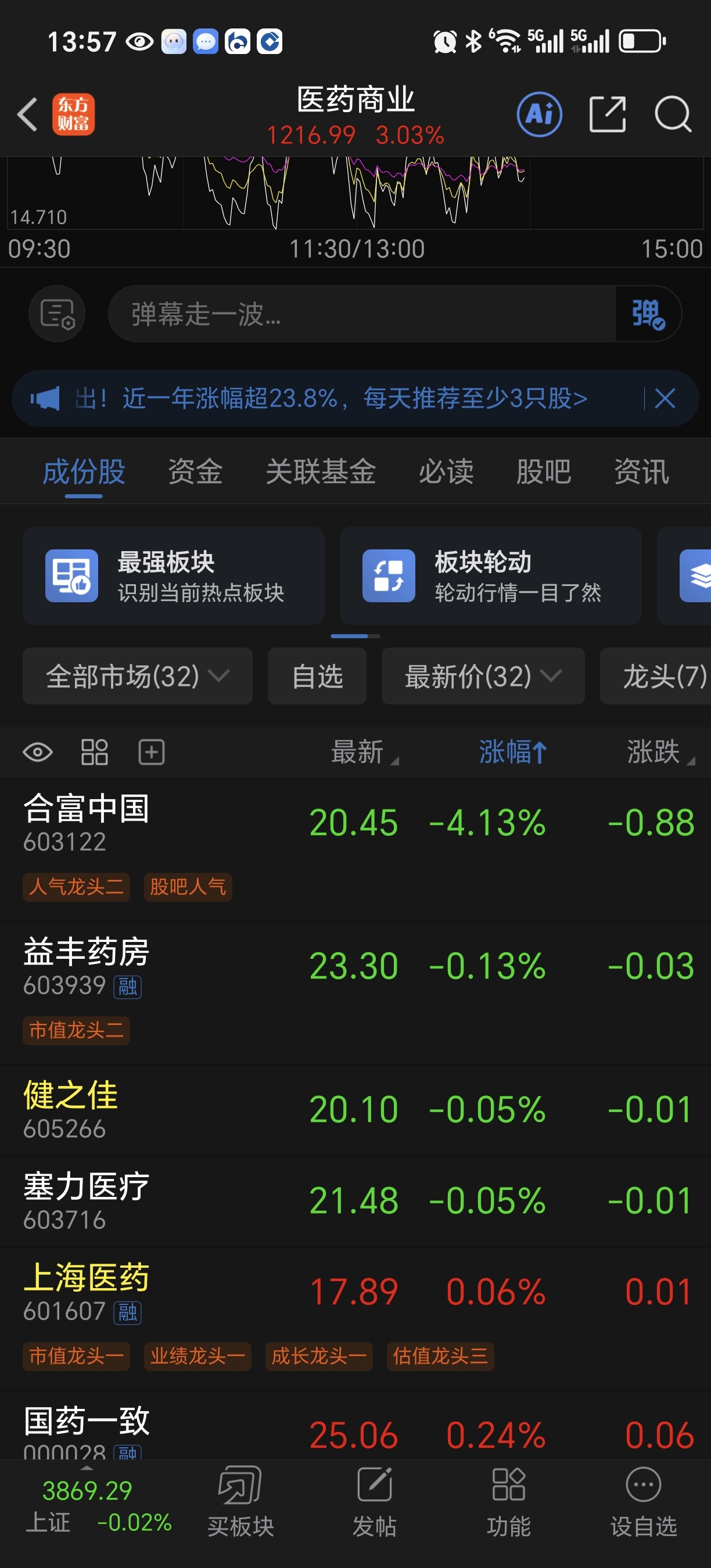 $健之佳(SH605266)$ 厉不厉害!!!大涨没跟过下跌没输过,板块红3个点,全盘就他绿!!
