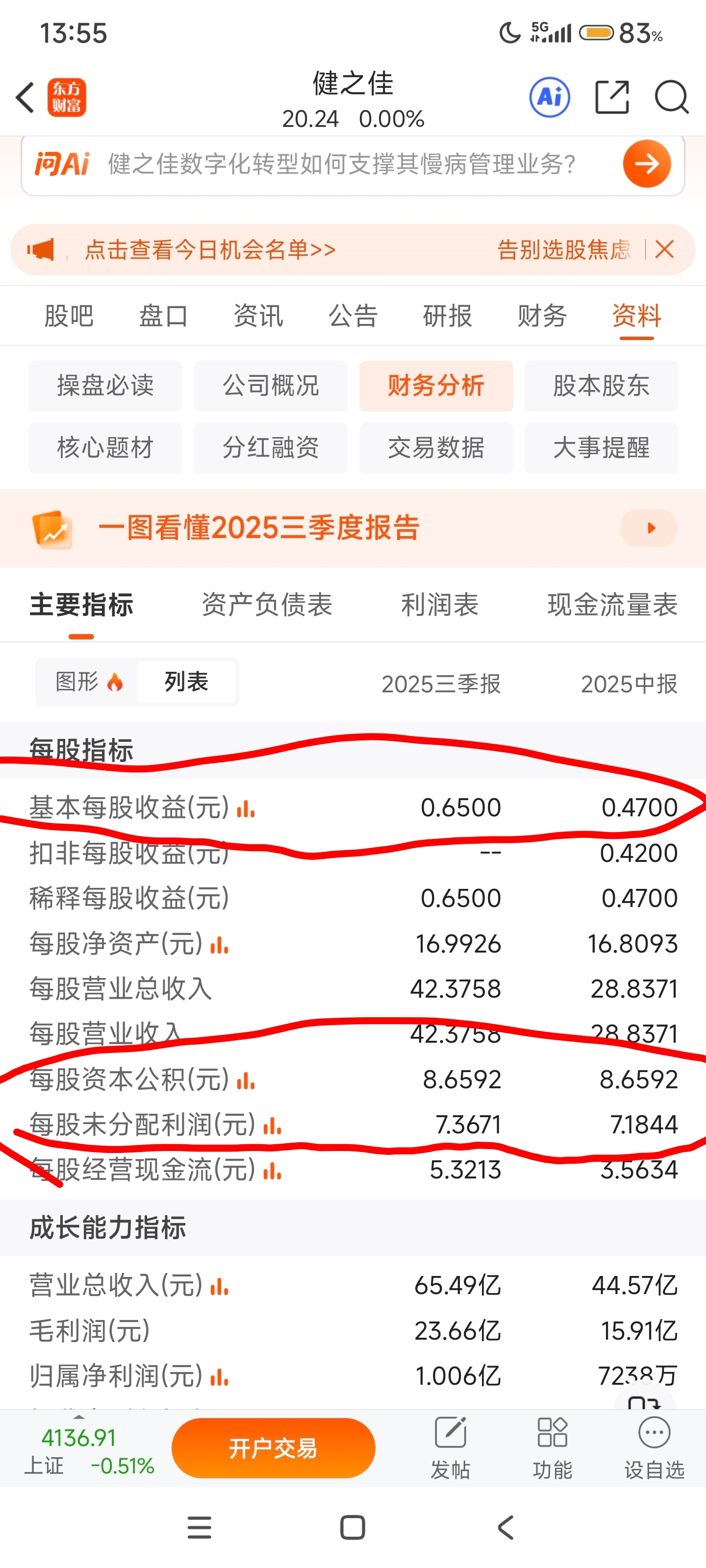 $健之佳(SH605266)$ 每股未分配利润7.36,大概率维持高股息,行业反内卷及医药分家,专业化较强的连锁将优先受益。这股是高股息个股。估值偏低,市值进入45-60亿为合理估值