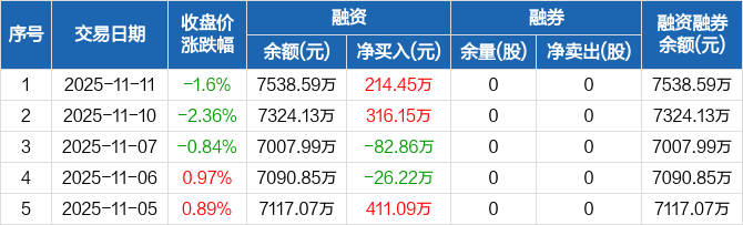 新亚电子:融资净买入214.45万元,融资余额7538.59万元(11-11)