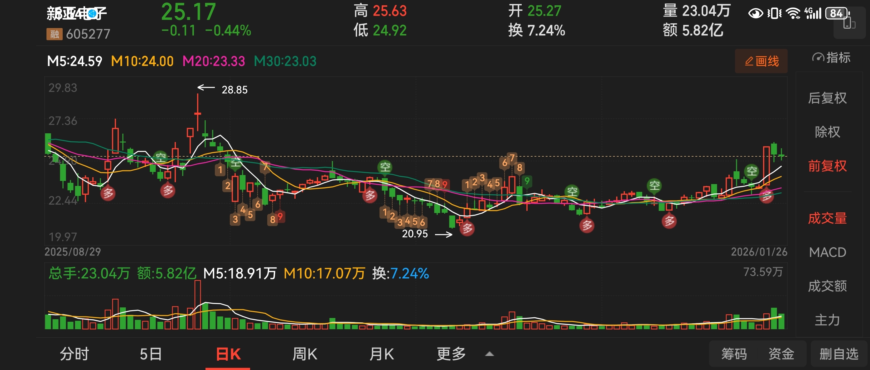 $新亚电子(SH605277)$ 能不能回踩五日线了?我好上车