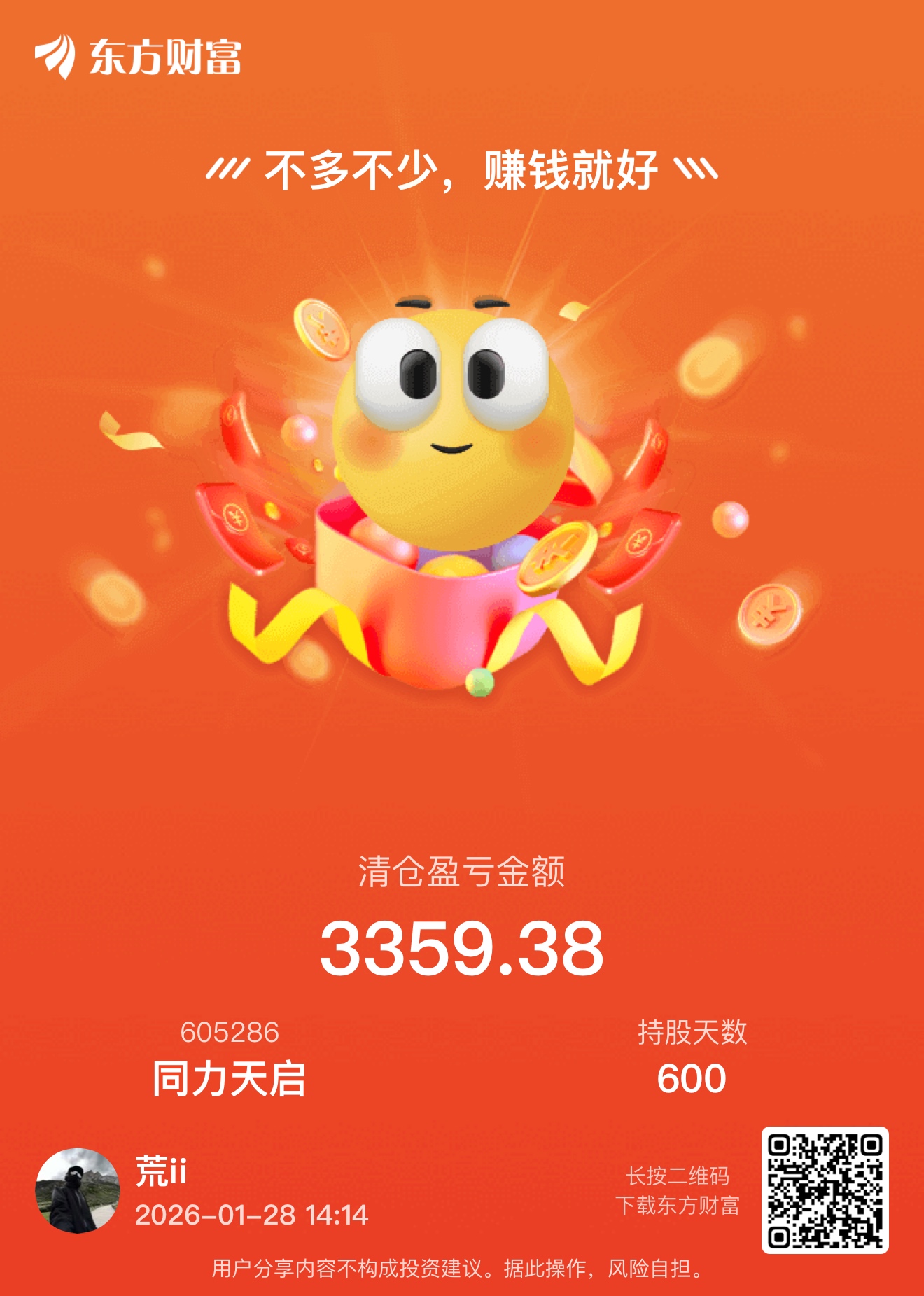 $同力天启(SH605286)$ 拿了600天,挣这么点走了,磨来磨去,真煎熬,换股了