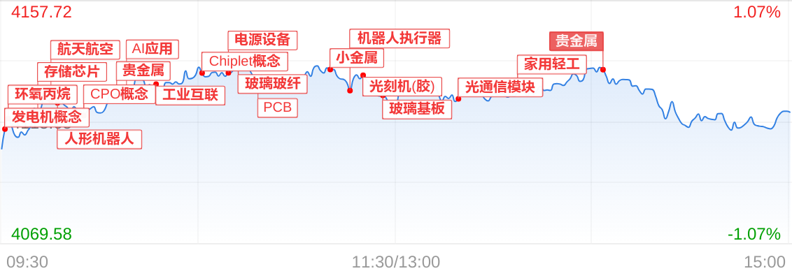 1 贵金属 国际金价创新高带动避险情绪升温,贵金属板块集体上涨 相关个股:$晓程科技(300139)$、$招金黄金(000506)$(3天2板)、$四川黄金(001337)$(5天3板)、$湖南白银(002716)$(6天3板)、$西部黄金(601069)$ 2 白银 美股重挫引发避险情绪升温,黄金白银价格创历史新高,带动相关个股上涨。 相关个股:$白银有色(601212)$(2天2板)、$湖南白银(002716)$(6天3板)、$赤峰黄金(600988)$、$盛达资源(000603)$、$豫光金铅(600531)$ 3 先进封装 台积电加大先进封装投资,玻璃基板商业化加速,推动产业链需求增长。 相关个股:$科翔股份(300903)$、$利扬芯片(688135)$、$华天科技(002185)$、$通富微电(002156)$(4天2板)、$气派科技(688216)$ 4 能源金属 碳酸锂主力合约大涨6%带动锂矿板块集体上涨 相关个股:$盛新锂能(002240)$、$中矿资源(002738)$、$天华新能(300390)$、$融捷股份(002192)$、$威领股份(002667)$ 5 科特估 英特尔财报预期引发市场对算力芯片关注,叠加格力电器碳化硅芯片量产消息刺激国产芯片概念走强。 相关个股:$龙芯中科(688047)$、$海光信息(688041)$、$澜起科技(688008)$、$大港股份(002077)$、$华天科技(002185)$市场热点