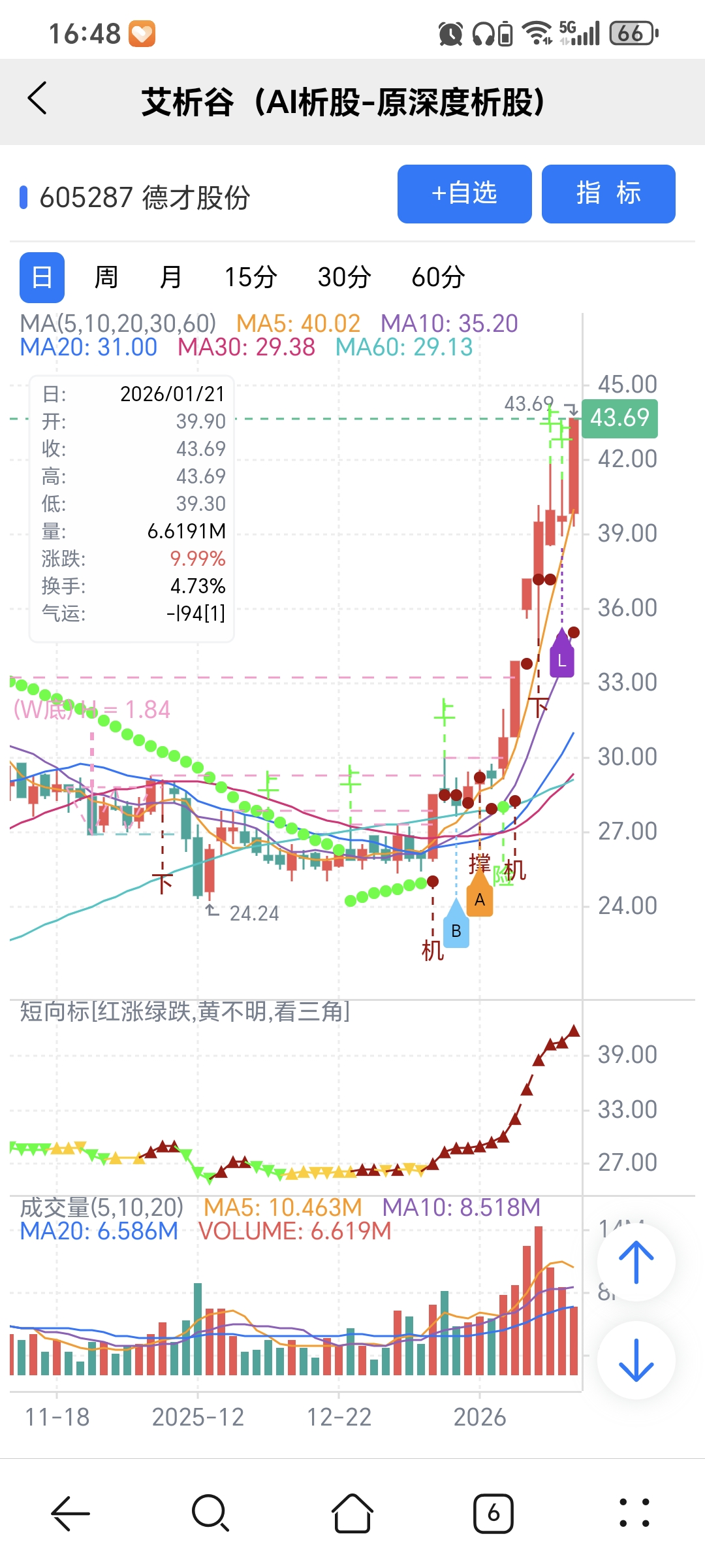 AI模型选股,量化指标识别关键点,简单技术分析确定买卖点,结合量化和人工综合运用,才能有优势。德才股份