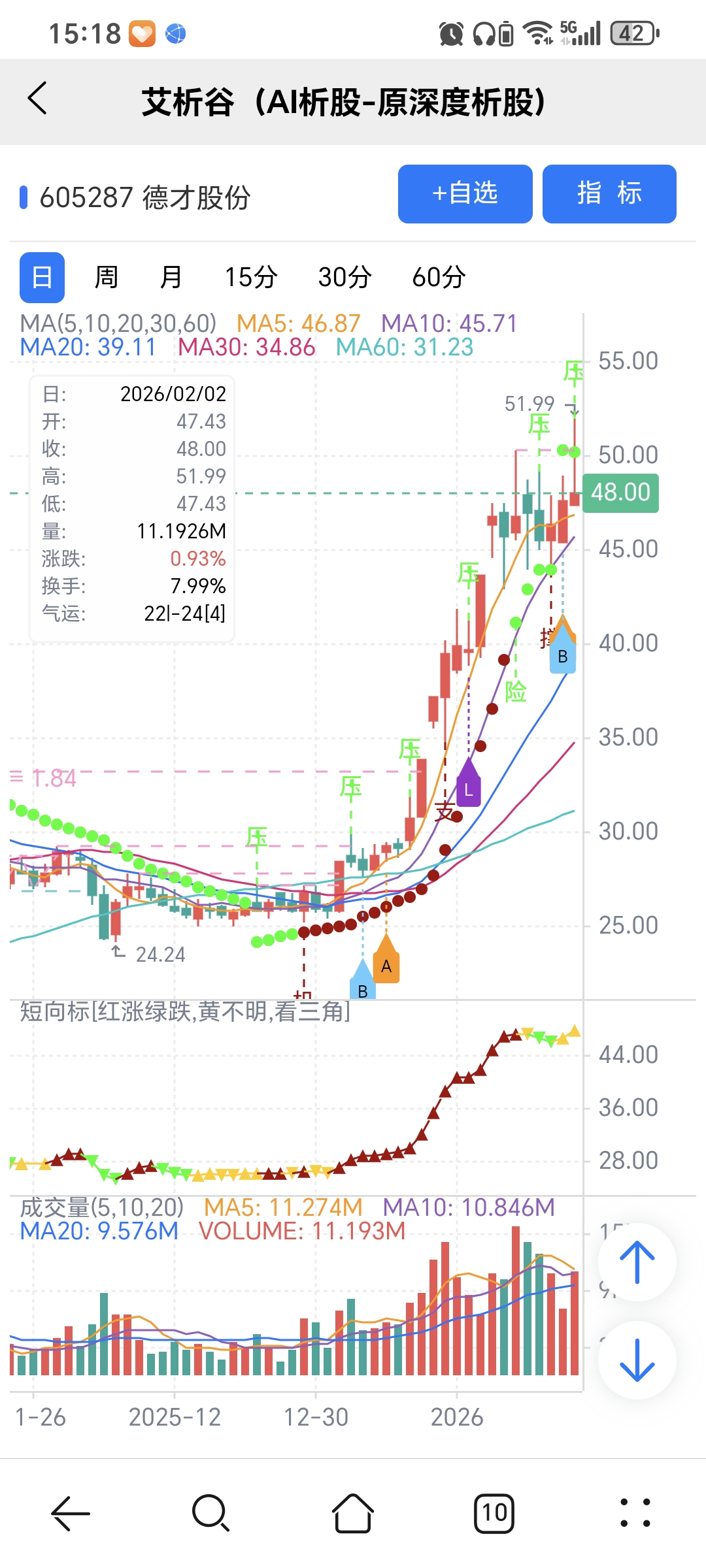 AI模型选股,量化指标识别关键点,简单技术分析确定买卖点,结合量化和人工综合运用,才能有优势。德才股份