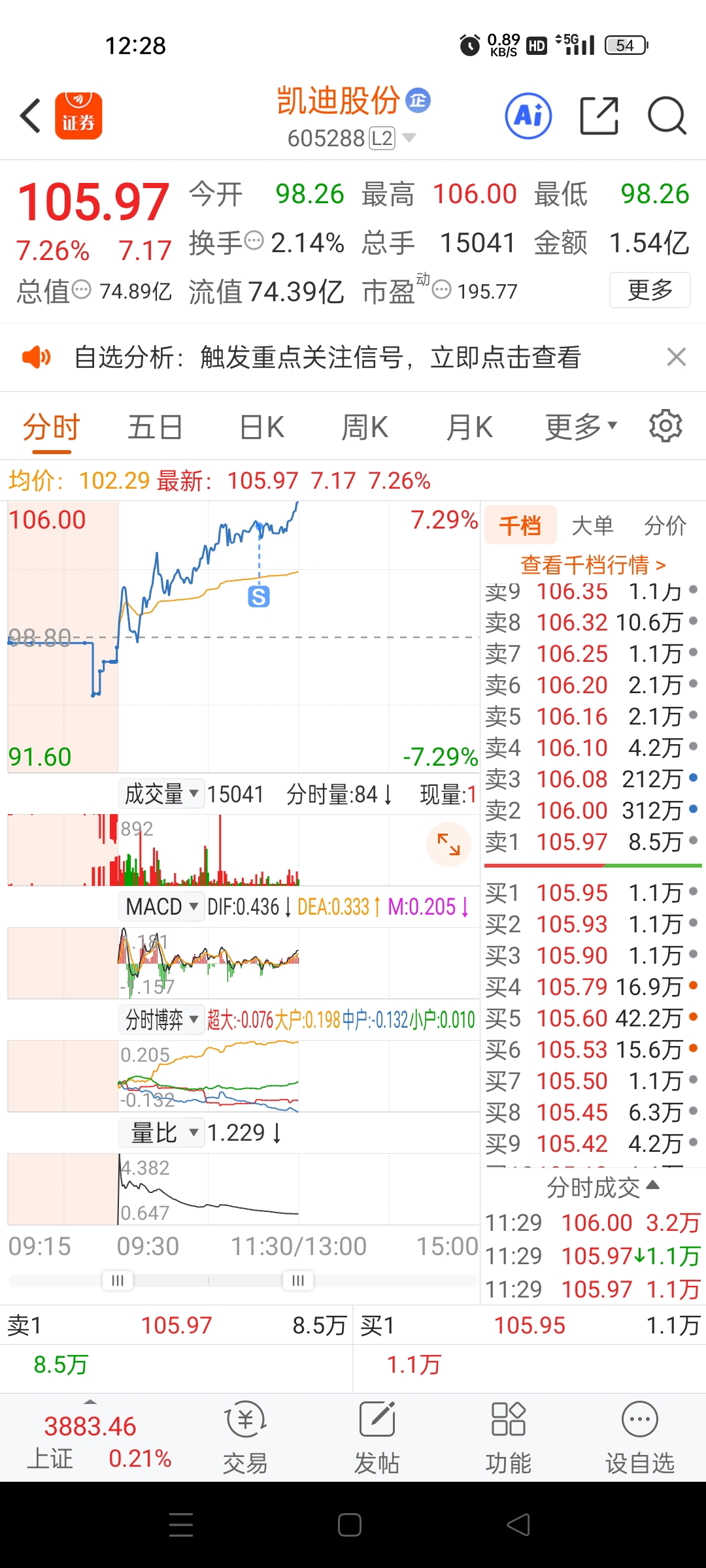 $凯迪股份(SH605288)$ 就不能盯盘的,卖飞了又