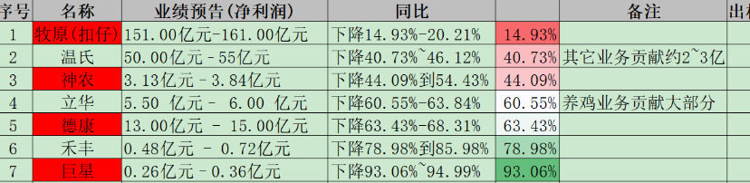 $神农集团(SH605296)$ 有博主整理的养猪股业绩,神农稳居养猪行业前三,仅次于牧原。