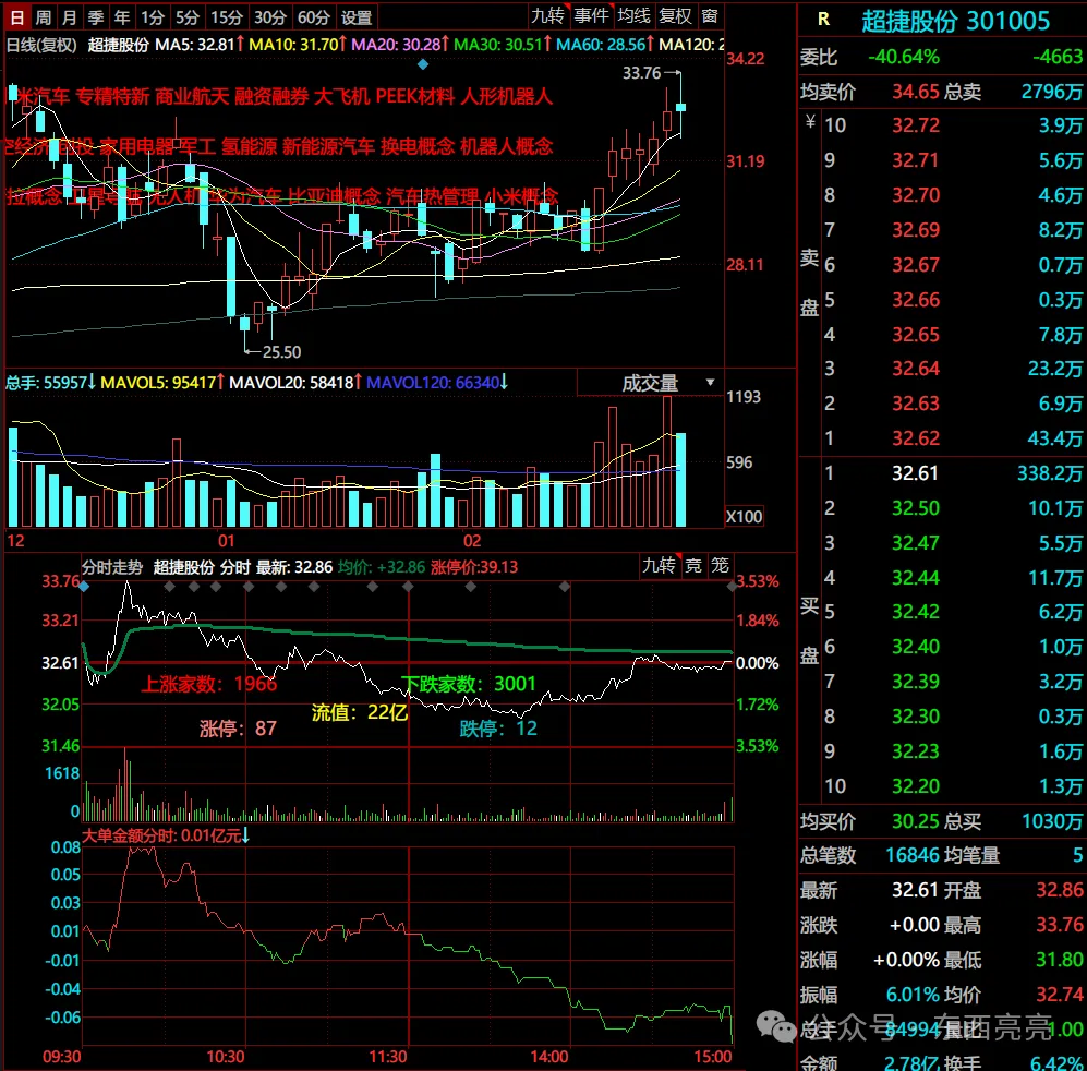 公司本身是机器人的低位票,位置低有性价比,有补涨预期。更重要的是它是小米汽车的供应商,昨晚小米SU7 Ultra的定价大超预期,销量市场直接对标保时捷。另外机器人这边,超捷股份已经给智元机器人小批量送样,同时给宇树和T送样,这里市场还没有充分挖掘到,还有预期。明天竞价开盘如果有带量攻击,那么可以考虑半路牵手,位置还挺低。今天备选就这一个,盘中有合适的会在评论区提示。$超捷股份(SZ301005)$