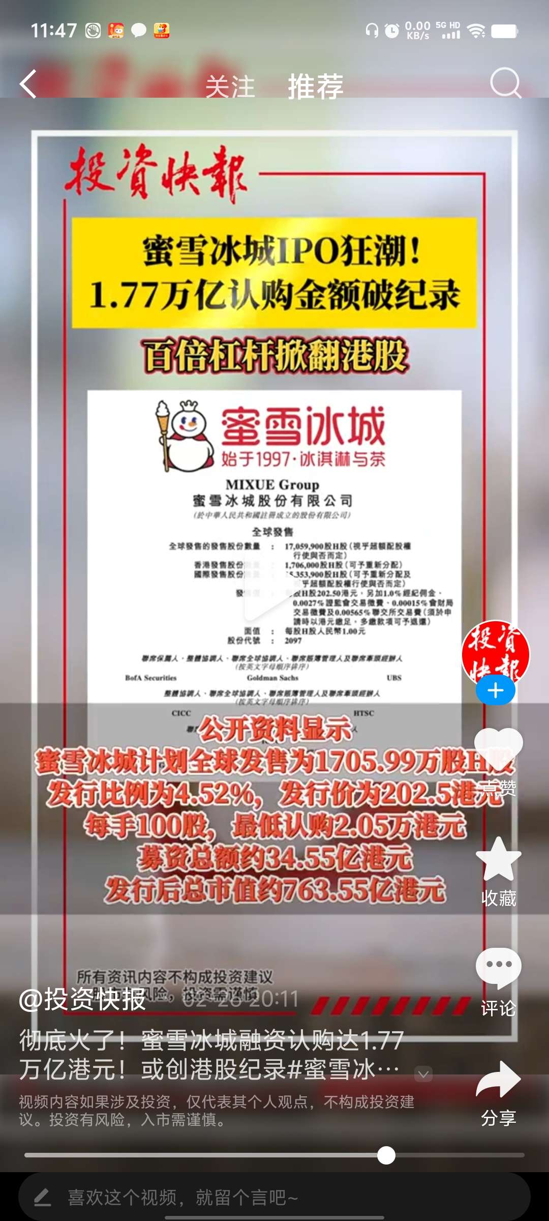 蜜雪冰城在香港的股票已经是200多而且很火,他是最大的供应商那股票也会跟着涨看好