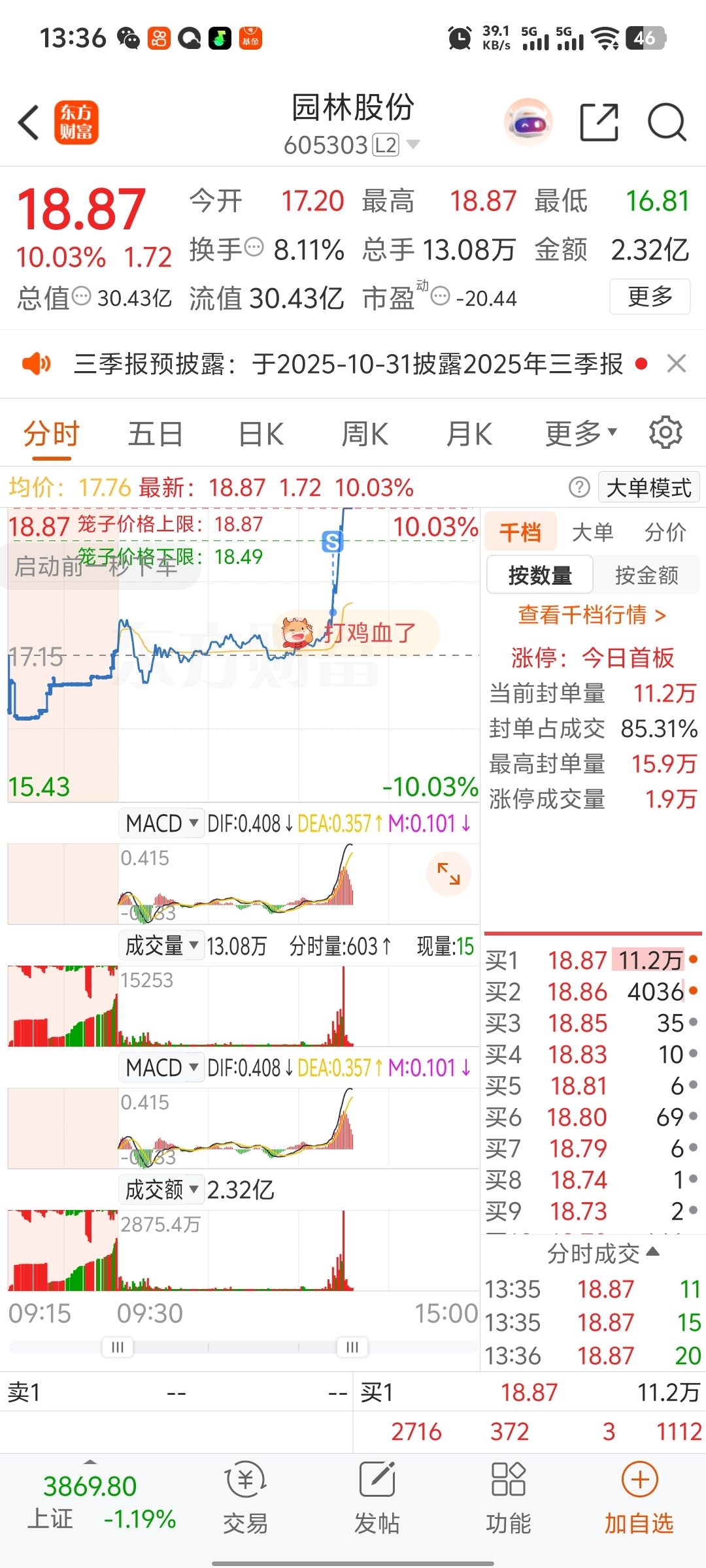 拿了好多天,今天大盘杀的厉害,狠心割肉了,结果涨停了