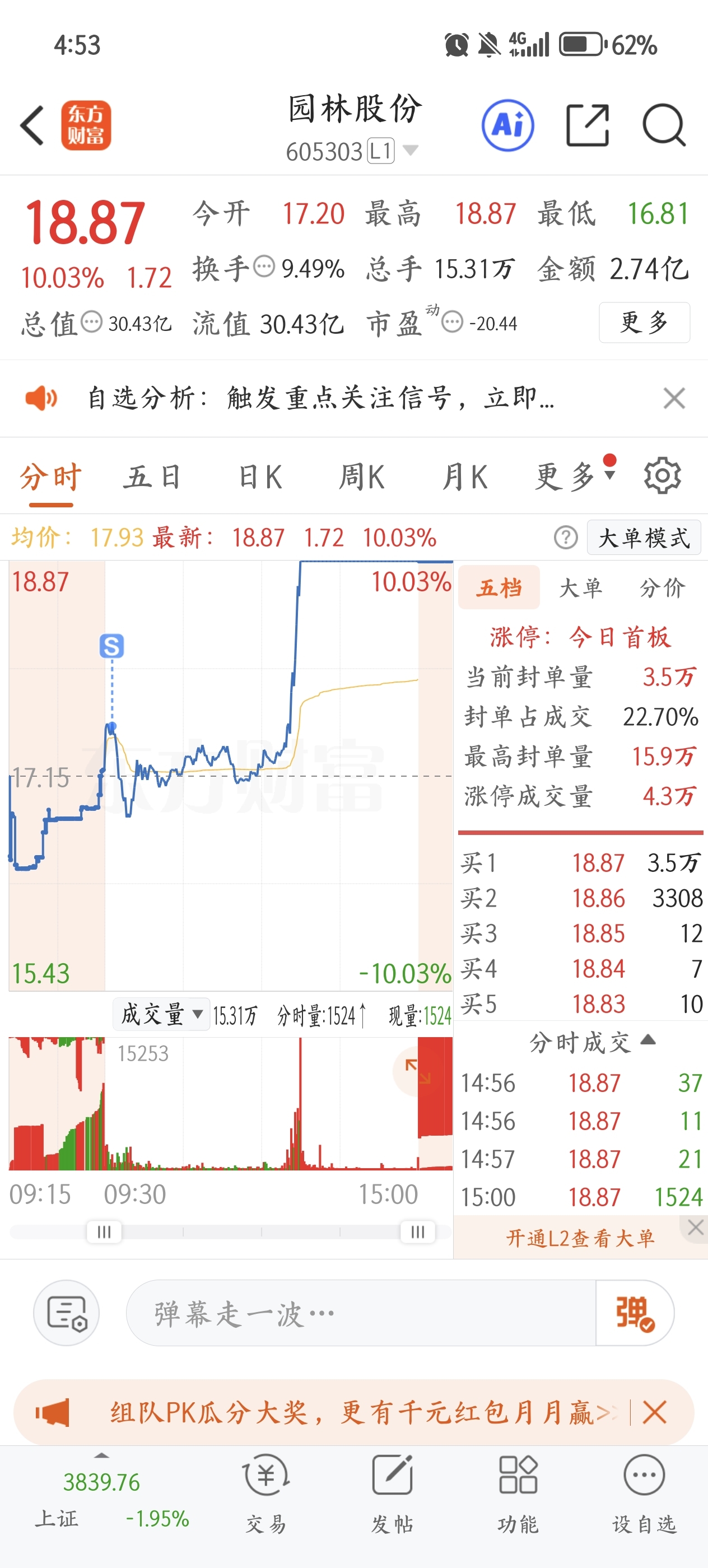 $园林股份(SH605303)$ 以为在最高点卖的 大聪明