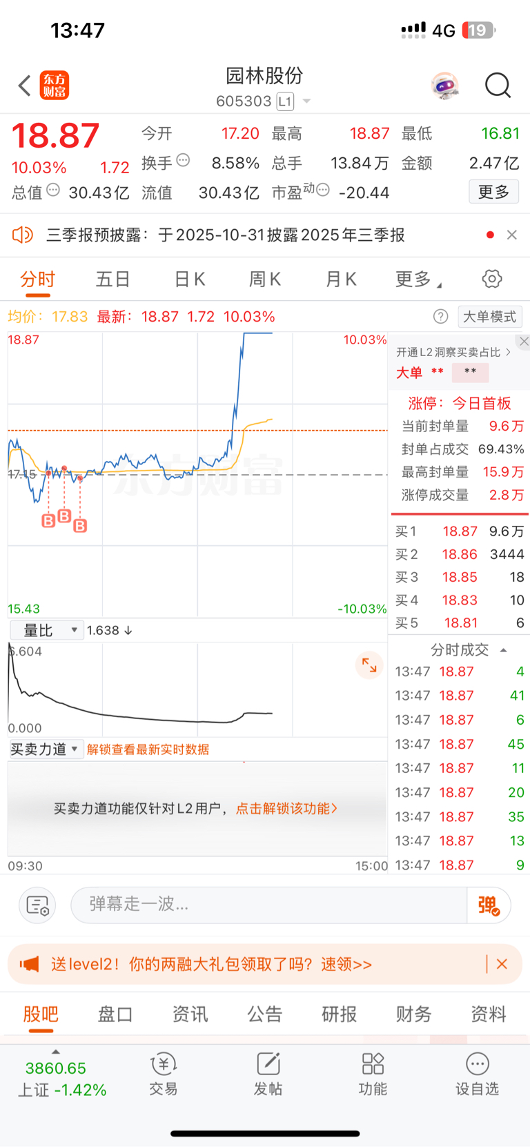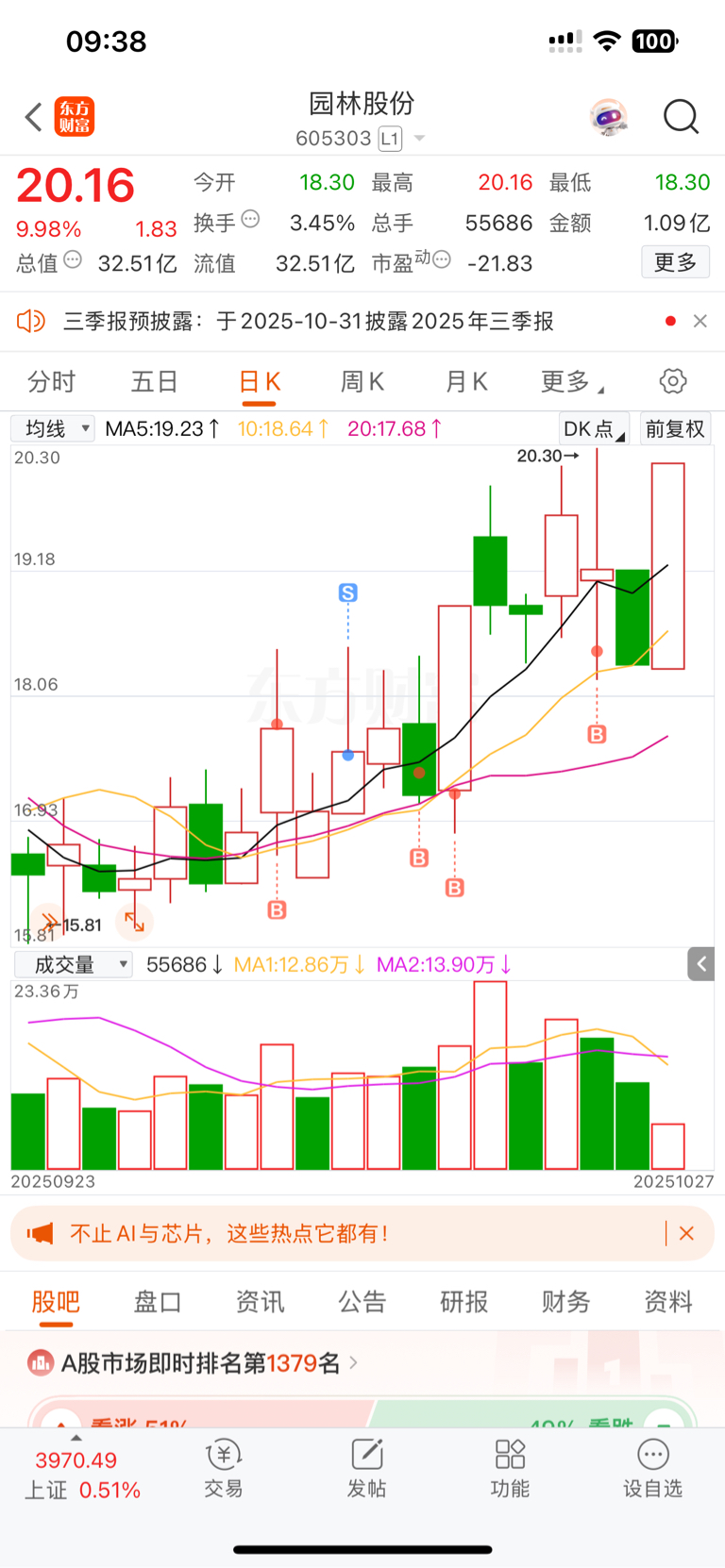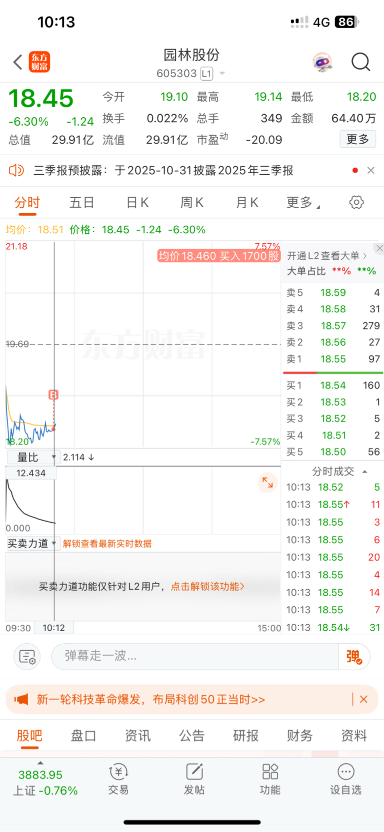 $园林股份(SH605303)$ 买了就安心持有,前怕狼后怕虎,操作什么股票呀!找个安稳工作上班不好嘛?非要来做韭菜,要稳坐钓鱼台,管它外面是狂风暴雨,我岿然不动,要亏的起,也敢拿的住盈利,今天高位走了的也不要庆幸,继续不动拿着没走的也不一定是坏事,日子慢慢长,后面是龙是蛇谁又知道呢,我就趴着不动,不看一天的涨跌,我看这票怎么都不可能就走到这里就串稀。