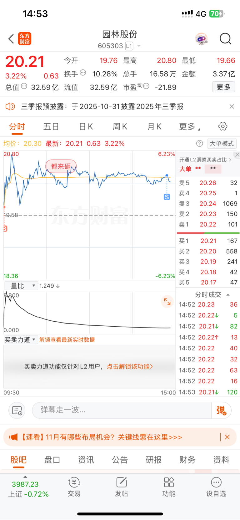 $园林股份(SH605303)$ 我也来砸盘,总是大家都不想好的,一起组团砸