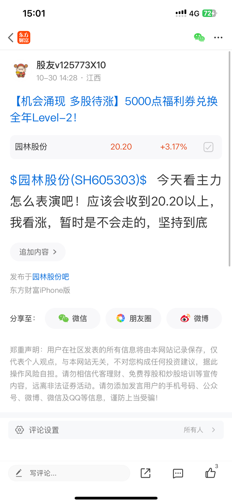 温馨提示: 1.根据《证券法》规定,禁止编造、传播虚假信息或者误导性信息,扰乱证券市场;2.用户在本社区发表的所有资料、言论等仅代表个人观点,与本网站立场无关,不对您构成任何投资建议。用户应基于自己的独立判断,自行决定证券投资并承担相应风险。《东方财富社区管理规定》