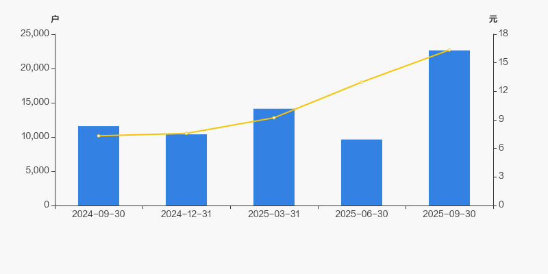 2024年9月30日至今,公司股东户数显著大幅增长,区间涨幅达95.34%。2024年9月30日至2025年9月30日区间股价上涨123.36%。