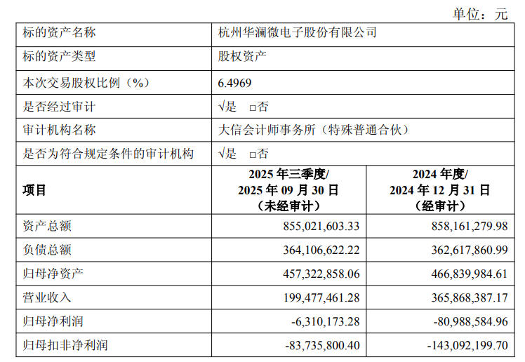 园林股份此前公告,拟以1.12亿元收购杭州华澜微电子股份有限公司(简称“华澜微”)6.4969%股权。