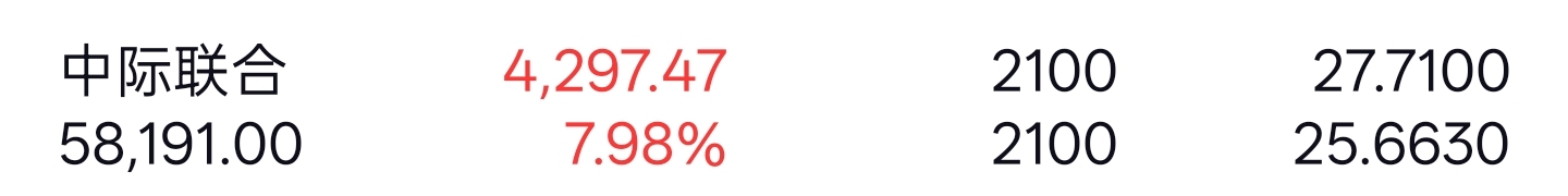 这两天共买入2000股中际,27.86、27.43各1000股,盈利是1月买的剩