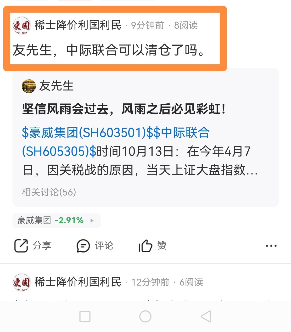 $中际联合(SH605305)$ $豪威集团(SH603501)$当前个股阶段调整,已经大致到位。没必要自乱阵脚,过度恐慌,更不要被有心的人带偏了节奏。当前坚定持股,择机加仓才是明智的选择。远离那些有意转发我文章并用于带偏节奏的不良用心者。此有图为证。我的目的只有一个,让这大浪淘沙留下坚定的长线价值投资者。祝各位好运!