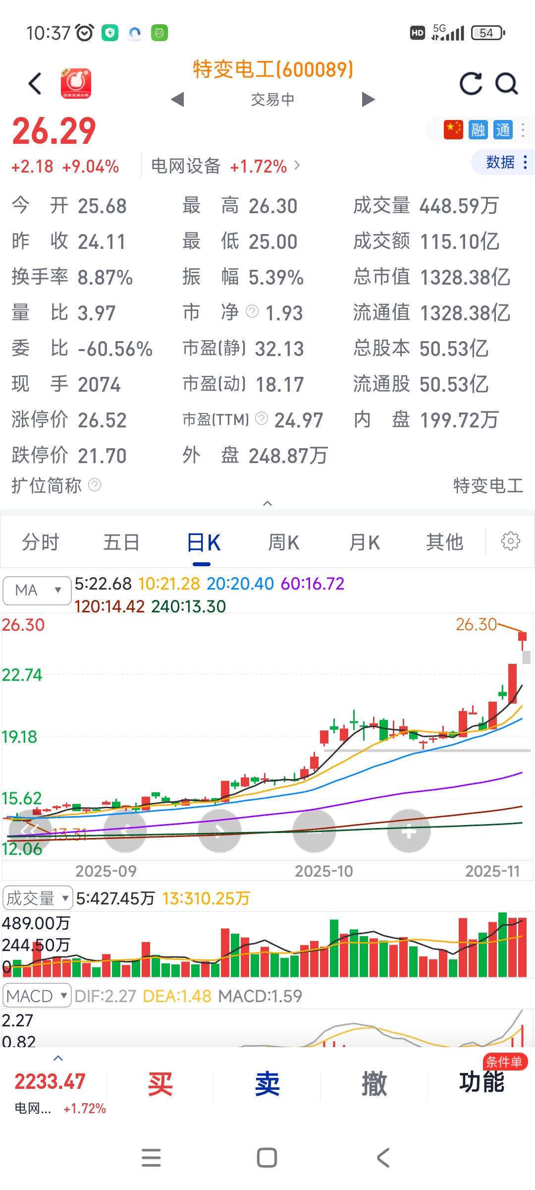 看看出海电网设备思源电气和特变龙头气质
