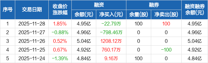 中际联合:融资净偿还22.79万元,融资余额4.95亿元(11-28)