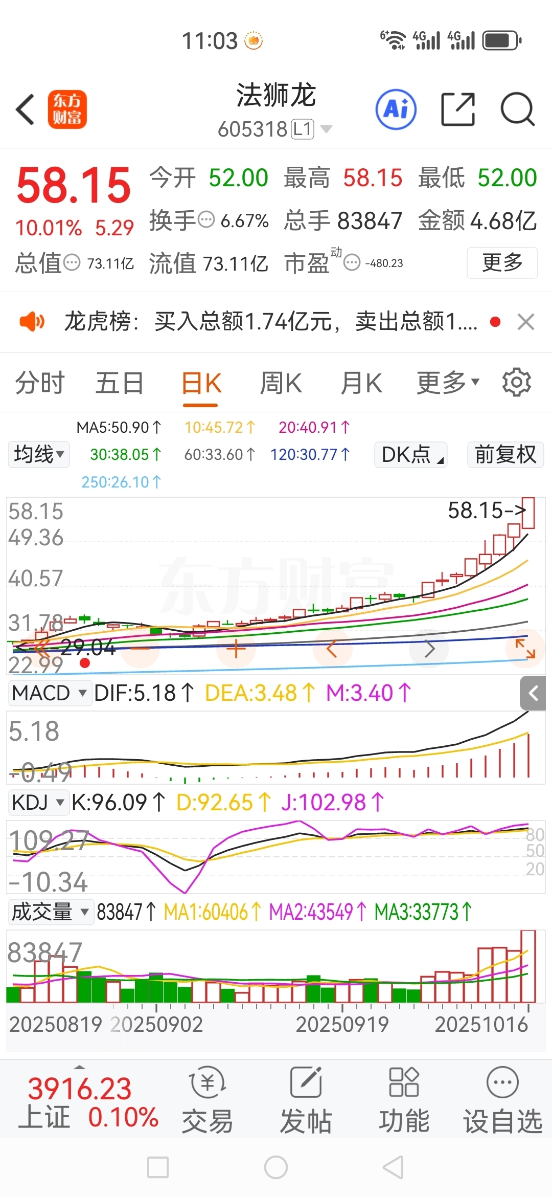 $法狮龙(SH605318)$ 我不是不知道牛股,是我不敢上。