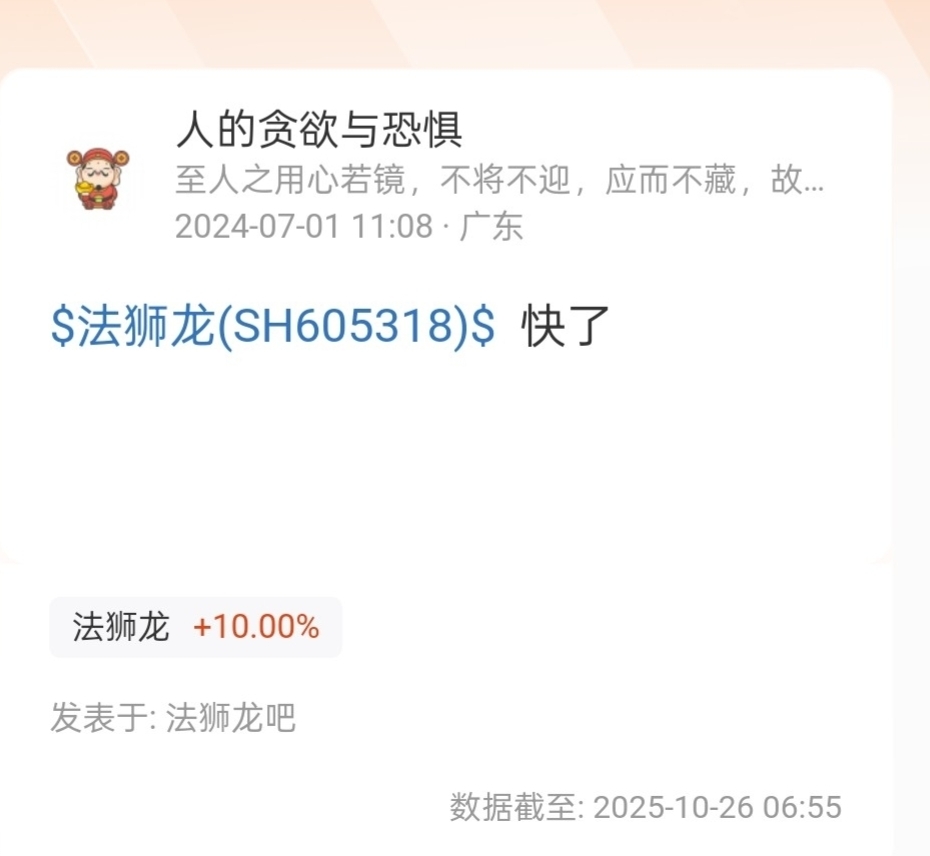 $法狮龙(SH605318)$ 底部你不买,顶部你再追,有什么意义吗???