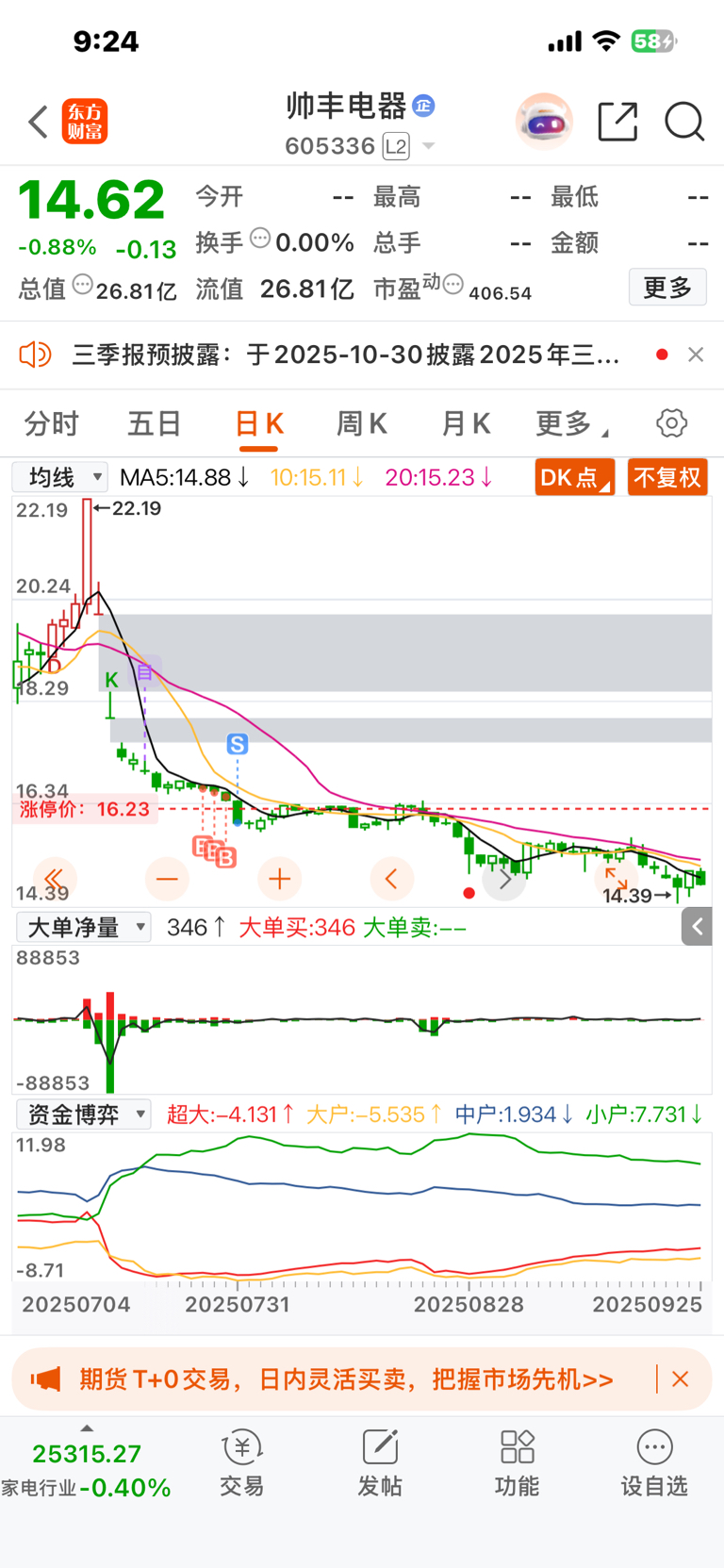 $帅丰电器(SH605336)$ 这是炒底吗?简直就是杀S盘!