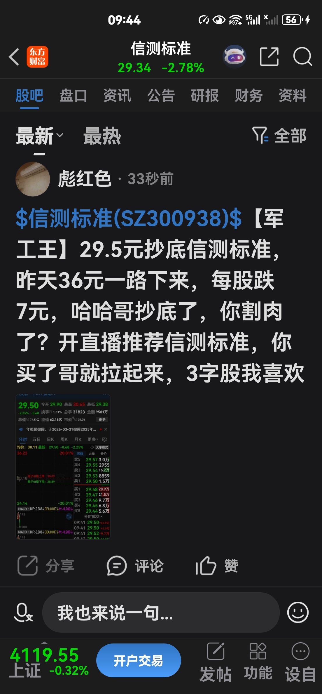 温馨提示: 1.根据《证券法》规定,禁止编造、传播虚假信息或者误导性信息,扰乱证券市场;2.用户在本社区发表的所有资料、言论等仅代表个人观点,与本网站立场无关,不对您构成任何投资建议。用户应基于自己的独立判断,自行决定证券投资并承担相应风险。《东方财富社区管理规定》