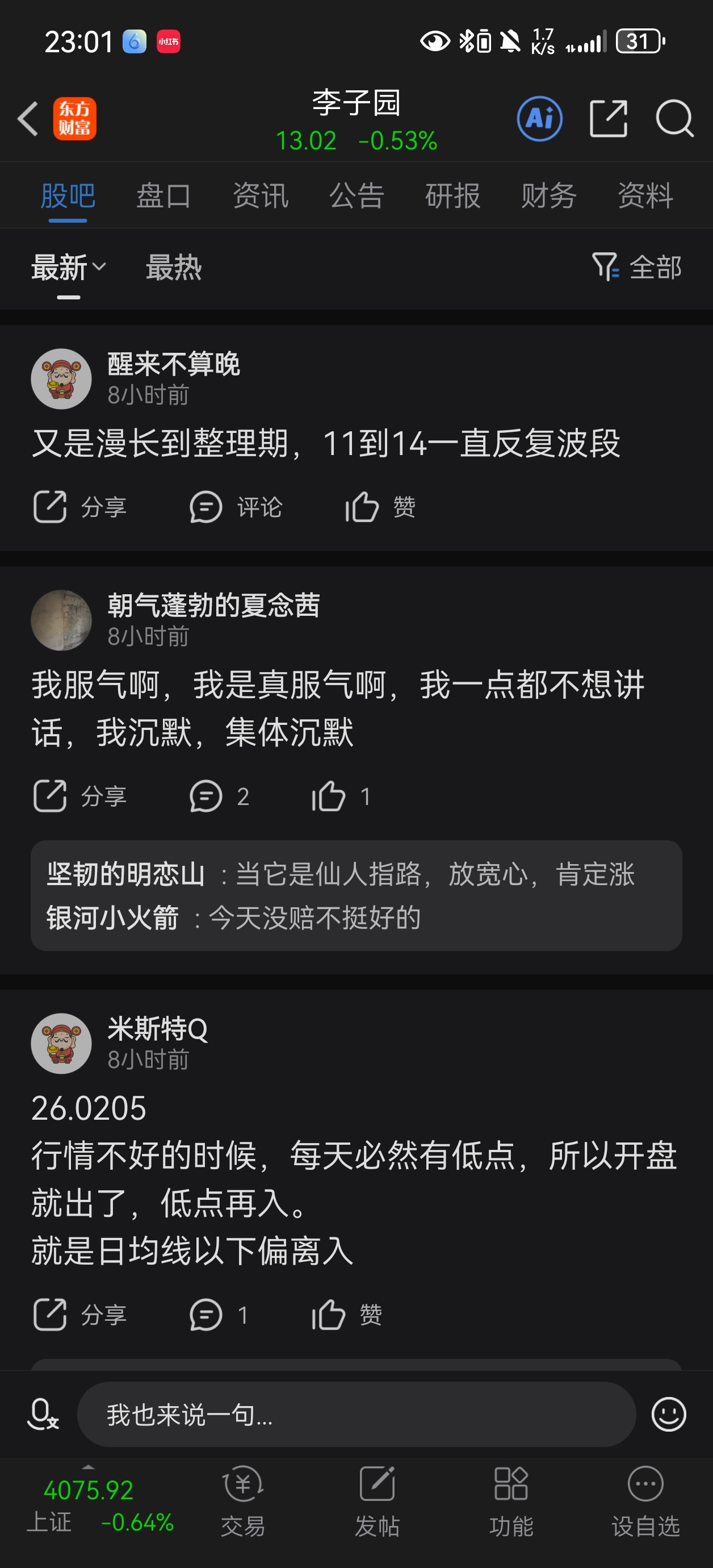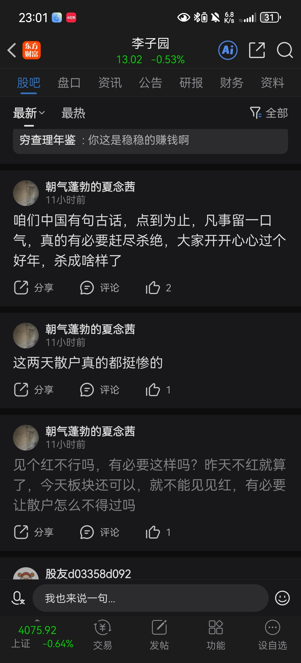 温馨提示: 1.根据《证券法》规定,禁止编造、传播虚假信息或者误导性信息,扰乱证券市场;2.用户在本社区发表的所有资料、言论等仅代表个人观点,与本网站立场无关,不对您构成任何投资建议。用户应基于自己的独立判断,自行决定证券投资并承担相应风险。《东方财富社区管理规定》