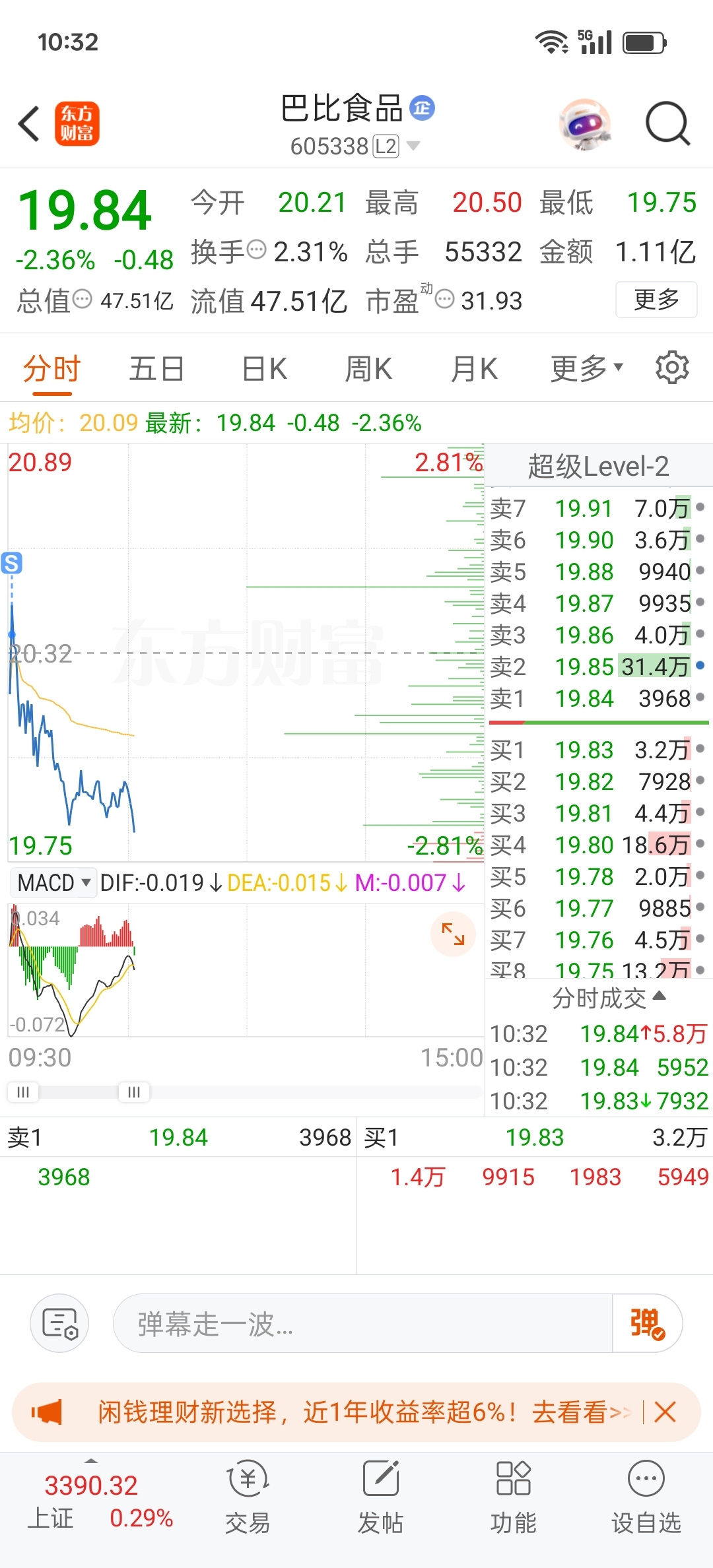 $巴比食品(SH605338)$ 知行合一,开盘就走,绝不留恋