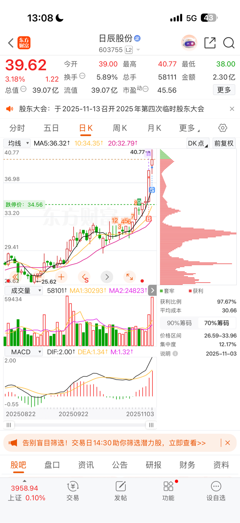 早上卖飞日辰,后面进了日比