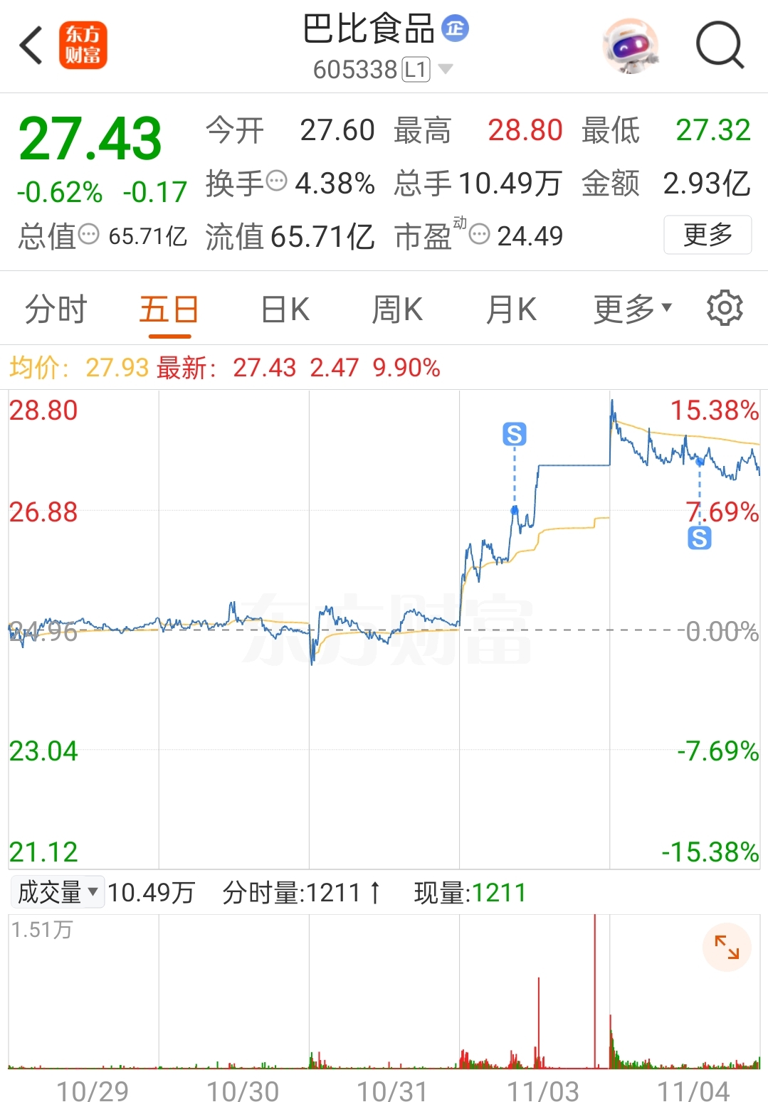 $巴比食品(SH605338)$ 三进三出,每次都能搞点早餐钱,票是好票,就是没有连板基因,回踩五日线,下摸十日线再回来