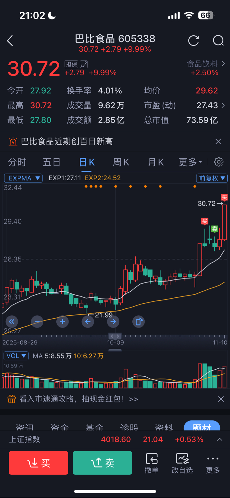 $巴比食品(SH605338)$ 还是得拼手速,埋了几天突然就拉,食品还有一个是惠发