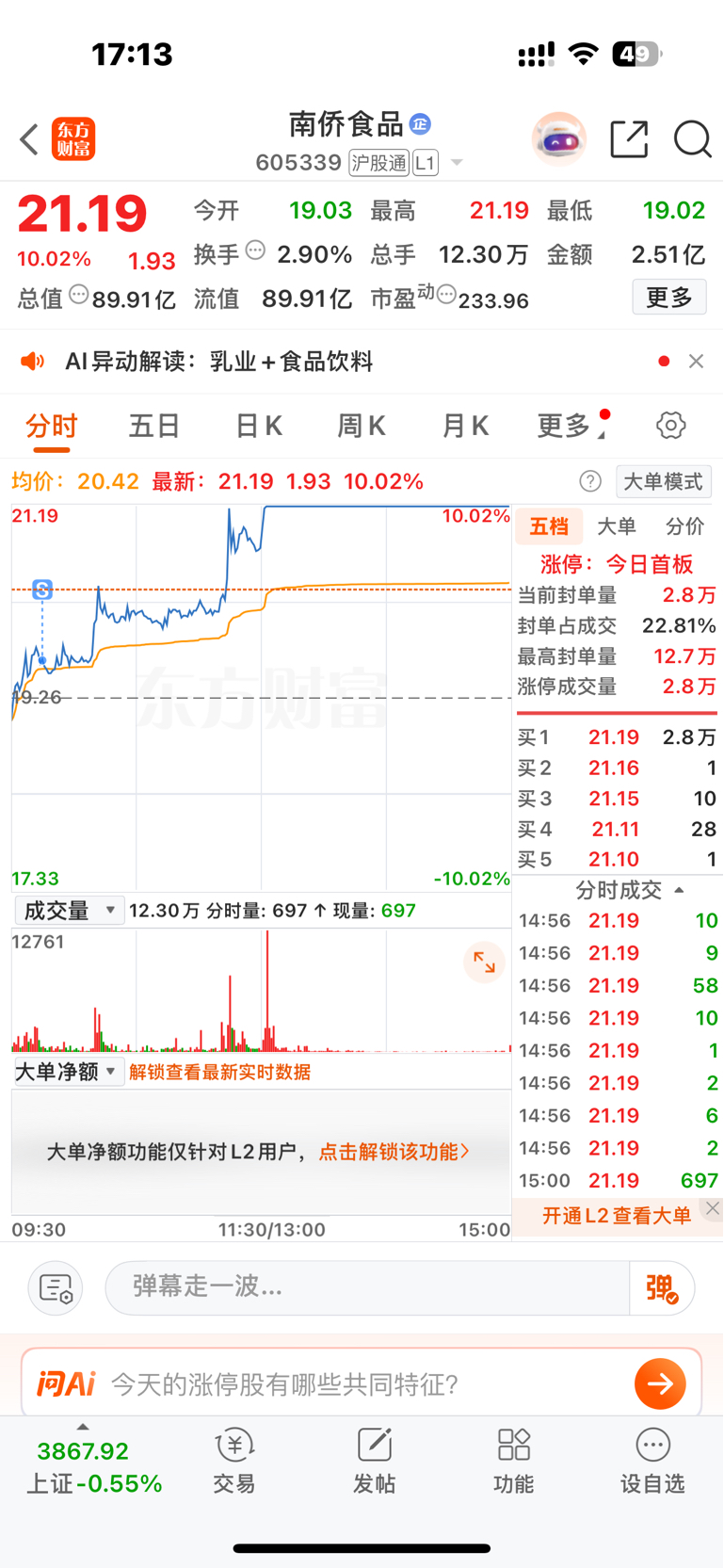 $南侨食品(SH605339)$ 我哭了