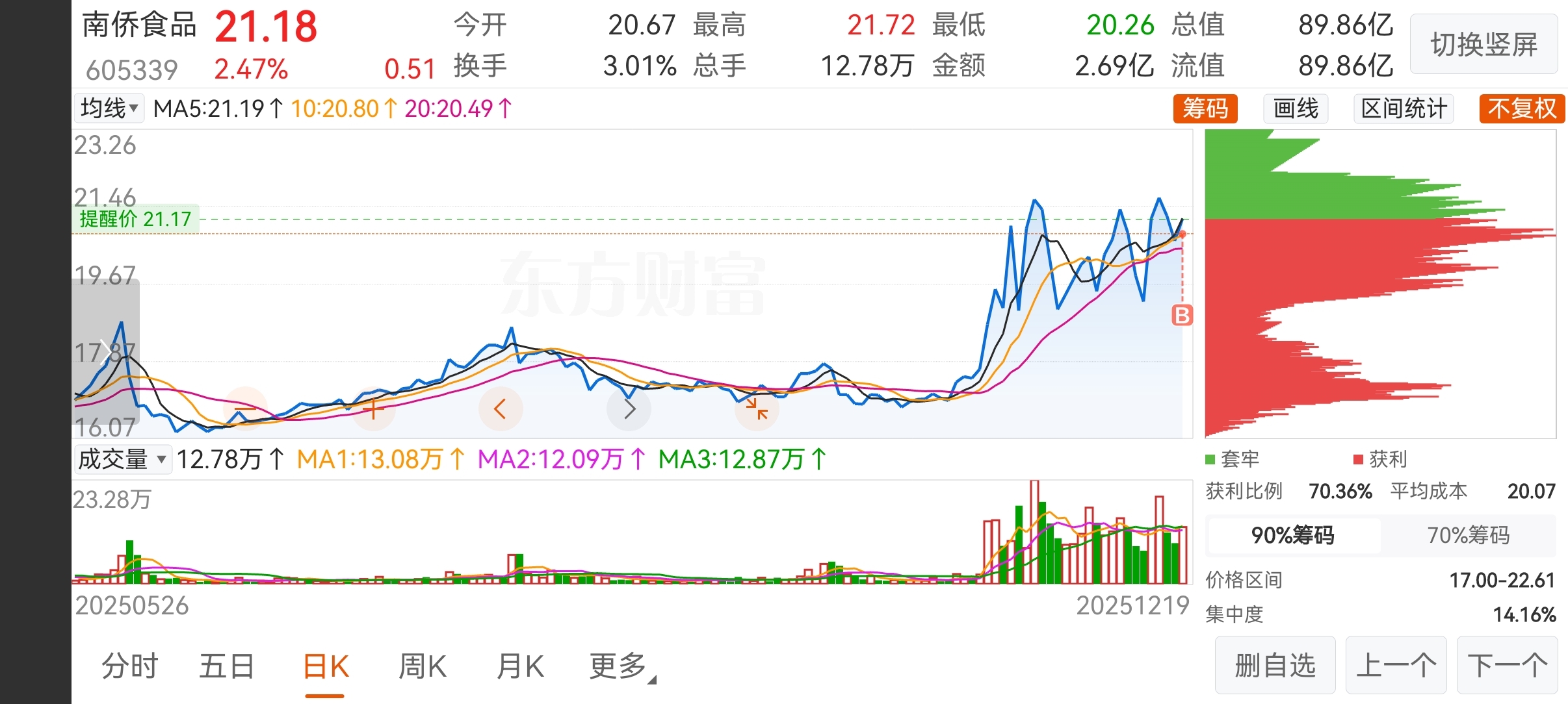 $南侨食品(SH605339)$ 买点底仓,周一看情况