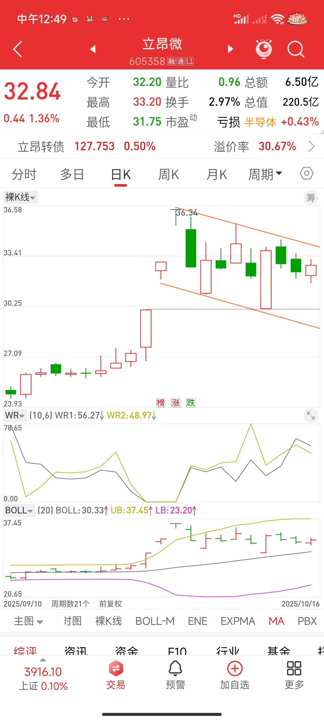 $立昂微(SH605358)$ 下跌通道下轨接着