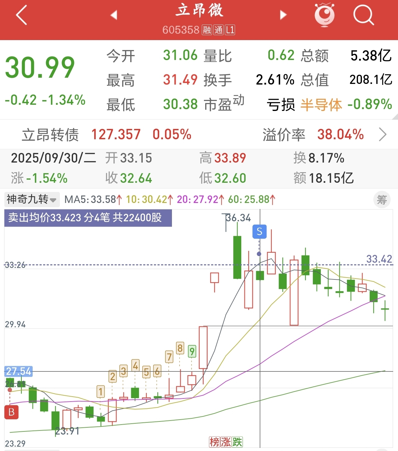 $立昂微(SH605358)$ !!!立昂微!!!主力加油卖,散户加油买所有立昂微的散户,机构,量化,原始股东,看好了33.42已清仓22400股,坐等主力回调28.28建仓抢筹码,高抛低吸,低吸高抛…买买买买买买,不买怎么卖