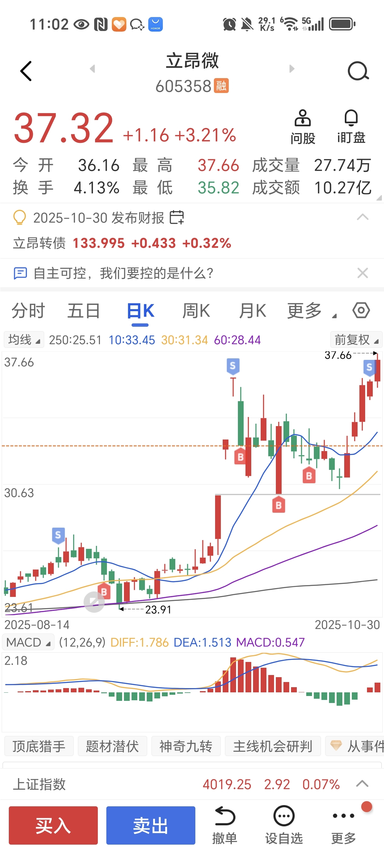 $立昂微(SH605358)$ 唉,赚少了,只能赚认知内的钱钱,不应该减仓的