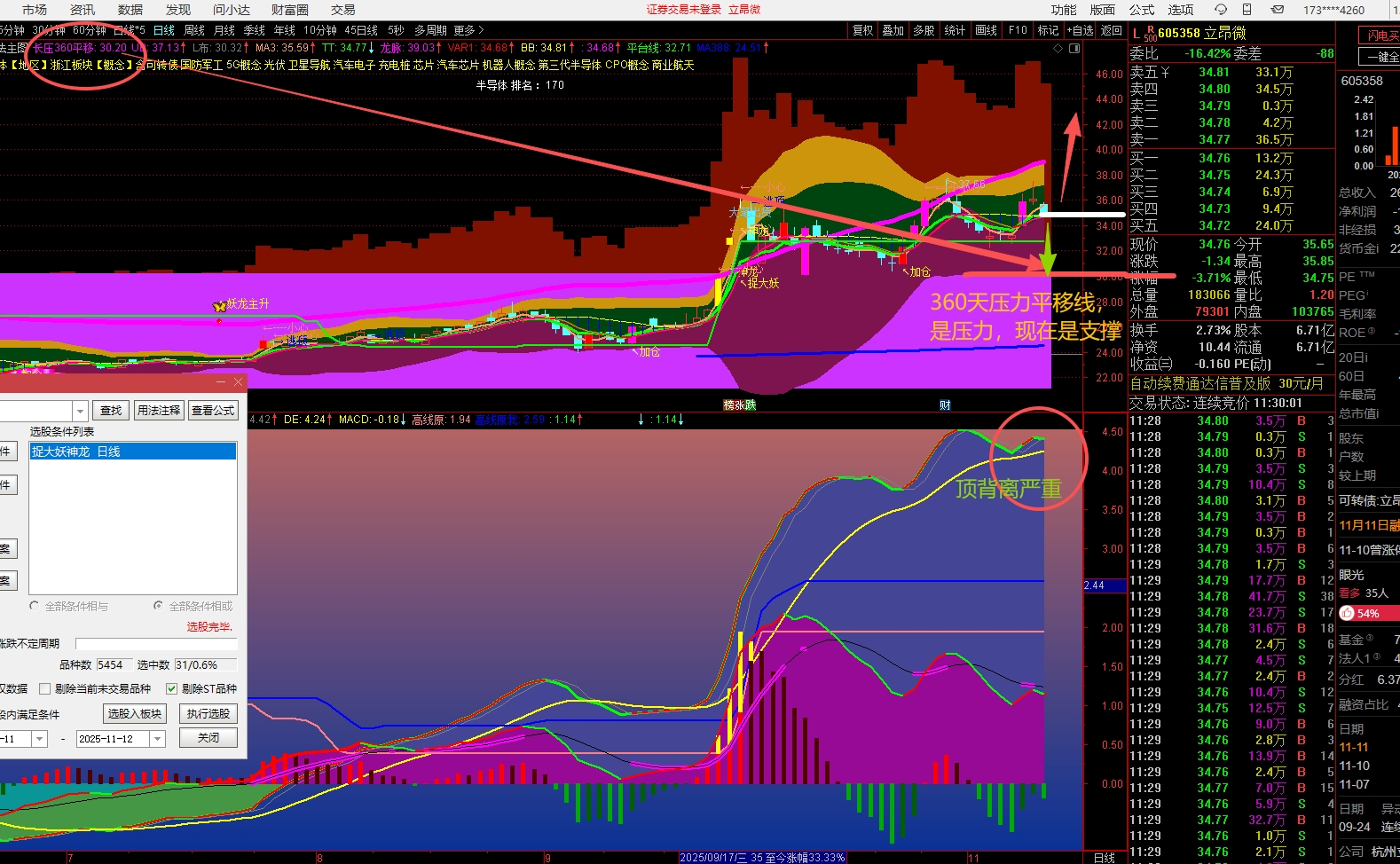 $立昂微(SH605358)$ 顶背离严重,是跌还是涨,大概率是要跌到360天压力平移线找支撑了,半导体原材料一直很烂,只能看空,大家注意风险,及时减仓,清仓,底部接回