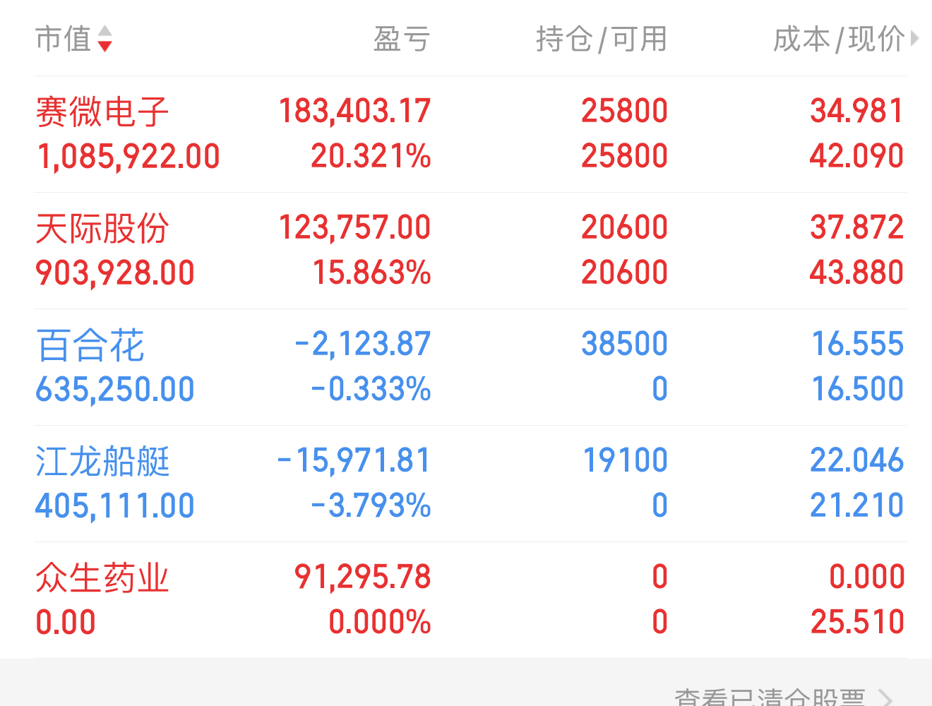 百合花603823:化工方向经过一段时间调整后短期以上板的方式企稳,早上高开不符合预期,文字说的是水平线附近,虽然早上迅速压到水平线附近但是没看到很好的承接所以一直等到下午才动手。这也是不多的应该比较稳健的,明天看是否反包。不行的话也不至于走的太差。