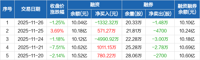 立昂微:融资净偿还1332.32万元,融资余额10.04亿元(11-26)