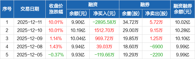 立昂微:融资净偿还2895.58万元,融资余额9.9亿元(12-11)