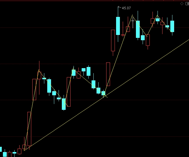 看我画的一手好图,上升趋势线还没破,再忍忍。走的和前面没啥区别